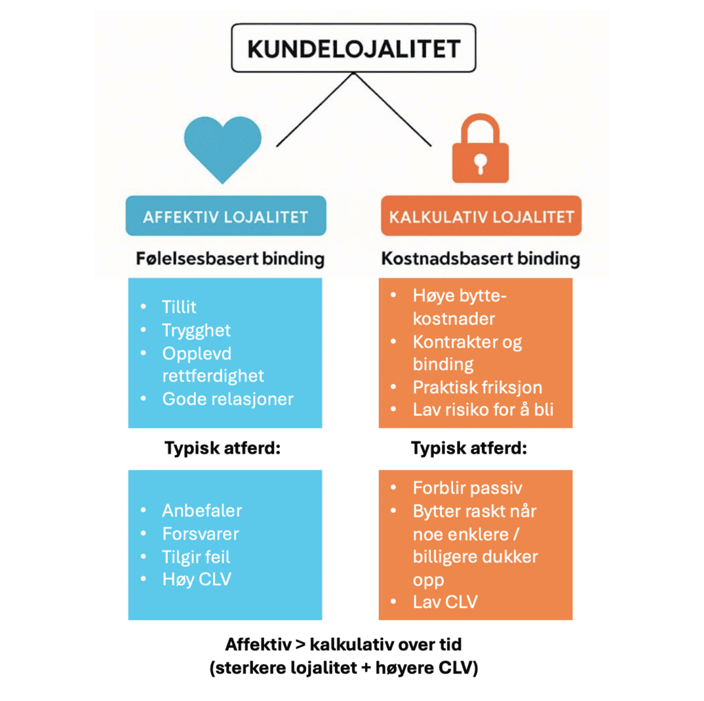 Affektiv lojalitet er ofte forbundet med sterkere relasjonell binding og høyere kundeverdi over tid.